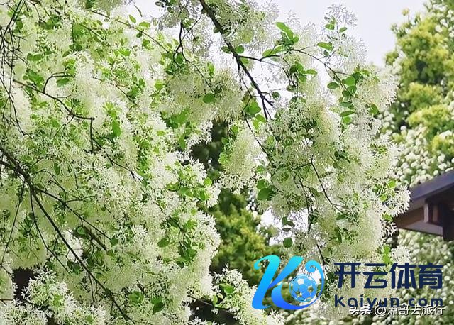 这一棵流苏树,位于三圣乡的图南院内,当今依然开爆了,每天诱骗不少游东谈主前去参不雅拍照。这棵树树形格外舒展、着花最蕃昌、不雅赏的嗅觉超好。花朵细碎皑皑、略带淡绿,密缀枝端,远不雅如白雪覆冠,近看花丝纤细、渺小似纱,如白纱仙子般好意思。不管是站在院落中仰拍,照旧站在二楼阳台俯拍,齐能拍出不同韵味的好意思。