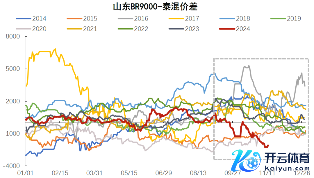 从需求维度来看,顺丁橡胶和自然橡胶手脚轮胎和其他橡胶成品的主要原材料,二者频繁是互补干系,但当二者价差处于极值状况时,卑鄙可能存在移动配方的启动。现在顺丁橡胶较羼杂胶贴水2300元/吨,位于近10年来季节性低位,卑鄙存在来自对自然橡胶潜在替代需求,对价钱变成一定撑抓。