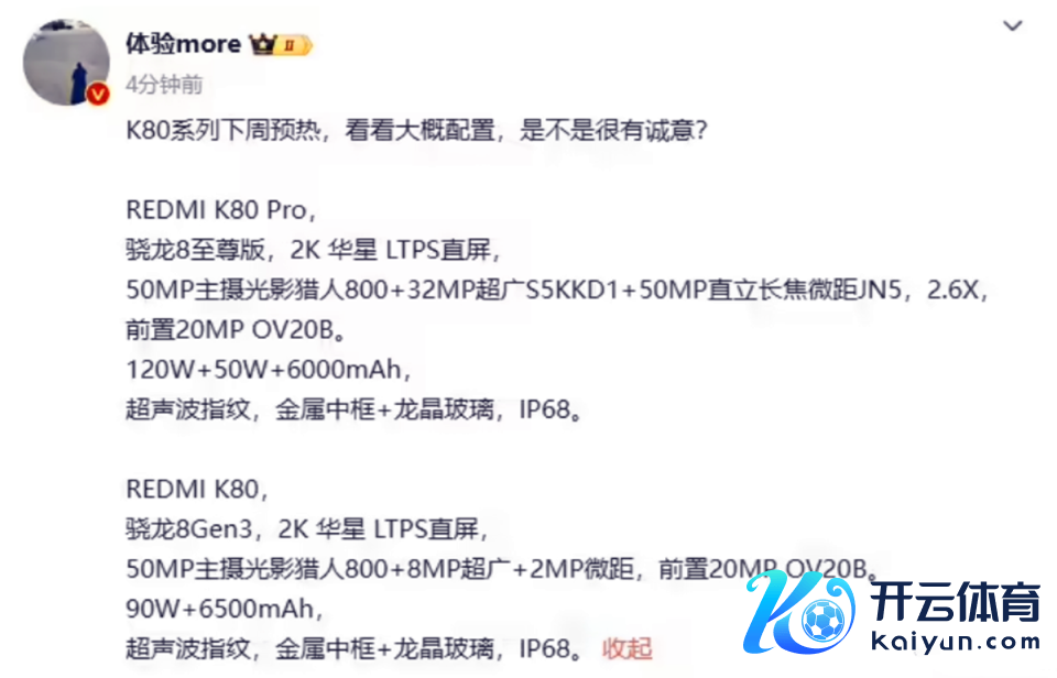 据博主称,红米K80和Pro版块的参数齐很显然,以Pro版块为例,中枢建立上搭载骁龙8至尊版管制器。