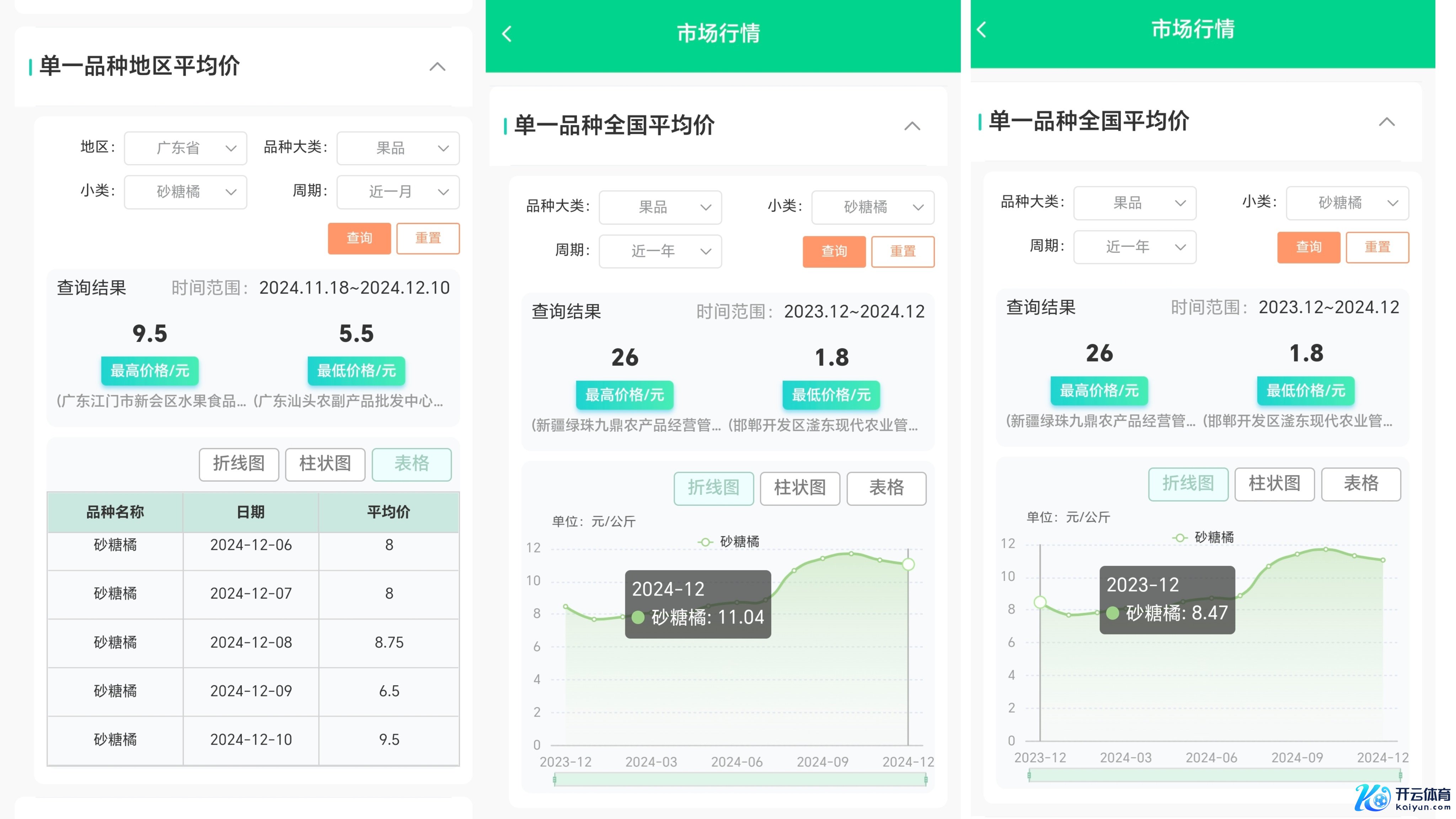 12月10日,砂糖橘12月的寰宇批发均价为11.04元/公斤,比较旧年同时的8.47元/公斤,涨幅达30.3%。10日,砂糖橘单一品种广东省平均价在9.5元/公斤。