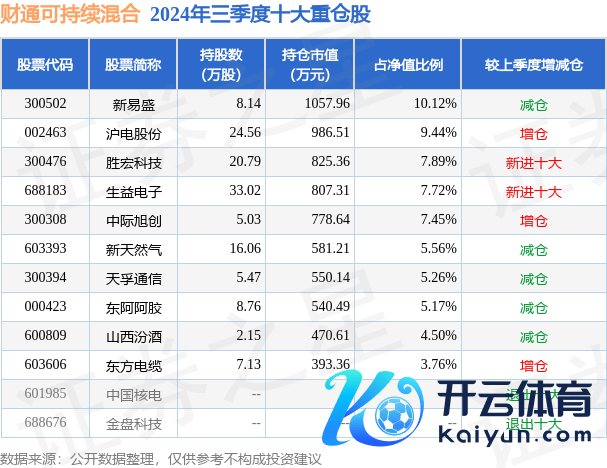 财通可握续羼杂为羼杂型-偏股基金,笔据最新一期基金季报败露,该基金金钱建立:股票占净值比87.21%,无债券类金钱,现款占净值比8.95%。基金十大重仓股如下: