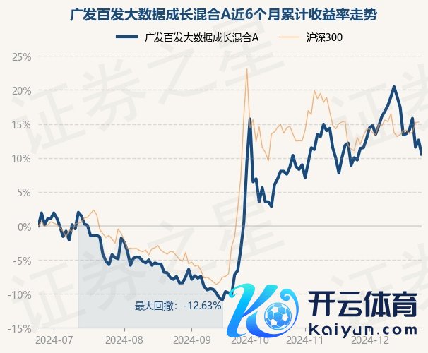 本站音信,12月25日,广发百发大数据成长夹杂A最新单元净值为1.279元,累计净值为1.336元,较前一往过去下降1.84%。历史数据走漏该基金近1个月上升0.47%,近3个月上升18.32%,近6个月上升10.54%,近1年下降3.33%。该基金近6个月的累计收益率走势如下图: