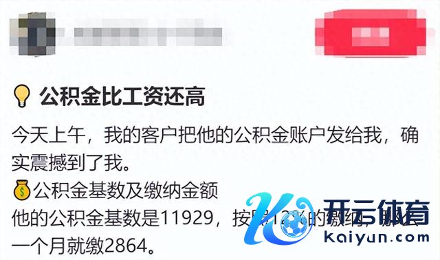 网友在某天上昼收到客户发的公积金账户,发现东说念主家的公积金交纳基数是11929,双边齐是按照12%的交纳,一个月参加账户的公积金就有2864。除此之外,企业尽然还给他交纳了补没收积金,每月2400,一齐加加起来就有4864。才发现东说念主家每个月得手的公积金比我方的工资还高。