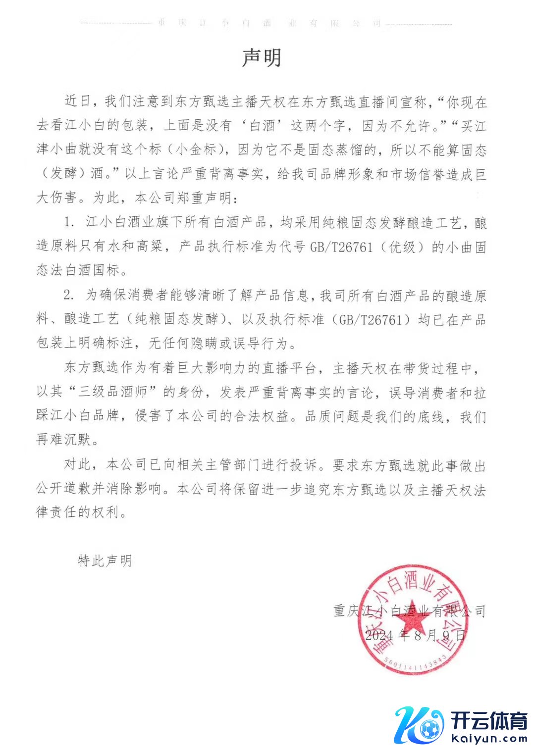 江小白酒业:已就东方甄选主播天权虚假言论向关联主宰部门投诉九游体育app娱乐江小白酒业:已就东方甄选主播天权虚假言论向关联主宰部门投诉