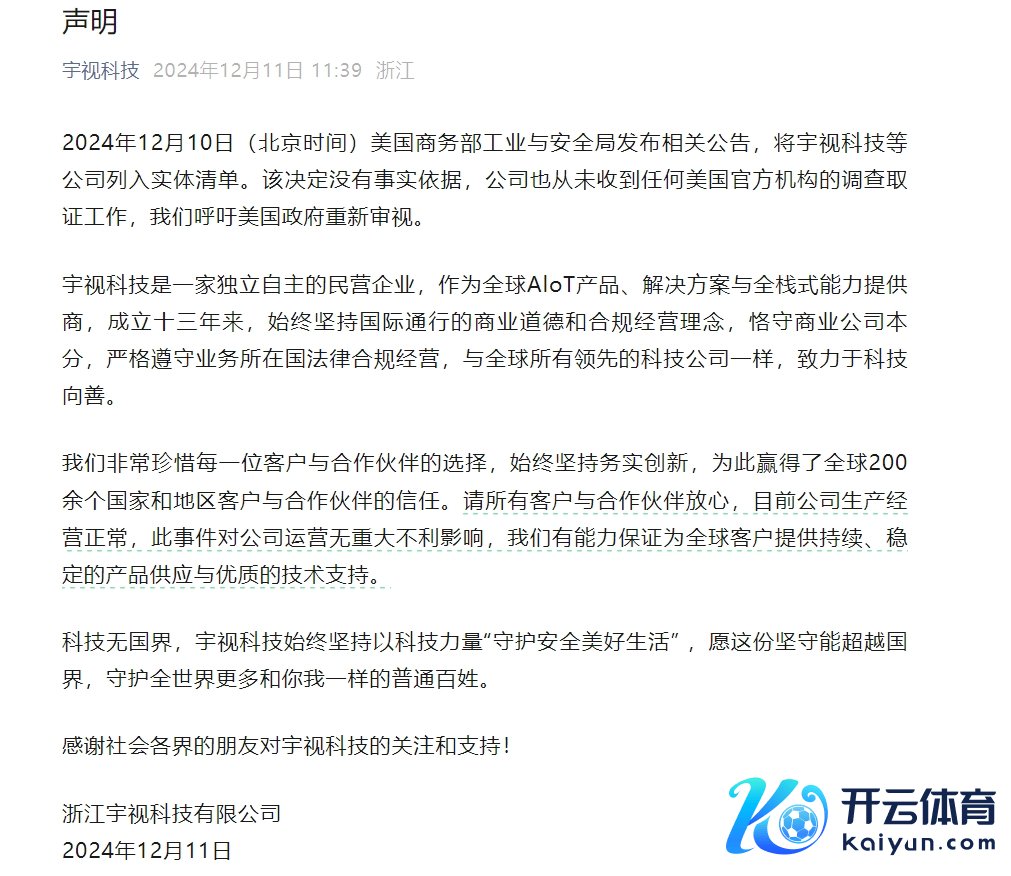 宇视科技:公司被列入“实体清单”莫得事实依据 当今分娩标的平方宇视科技:公司被列入“实体清单”莫得事实依据 当今分娩标的平方
