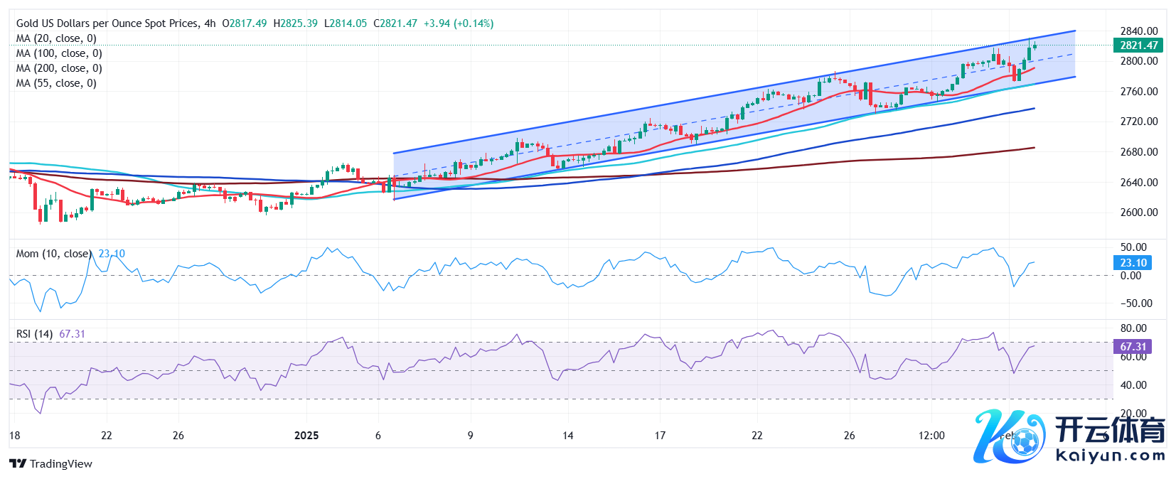 24K99讯 周二(2月4日)亚市盘中,现货黄金再度走强,金价当今位于2824好意思元/盎司近邻,日内高潮约10好意思元。FXStreet首席分析师Valeria Bednarik撰文,对黄金时刻出息进行分析。