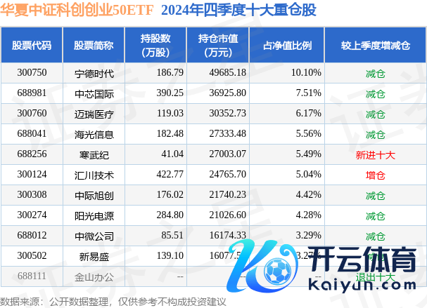 中原中证科创创业50ETF为指数型-股票基金,把柄最新一期基金季报清爽,该基金钞票设立:股票占净值比99.83%,无债券类钞票,现款占净值比0.38%。基金十大重仓股如下: