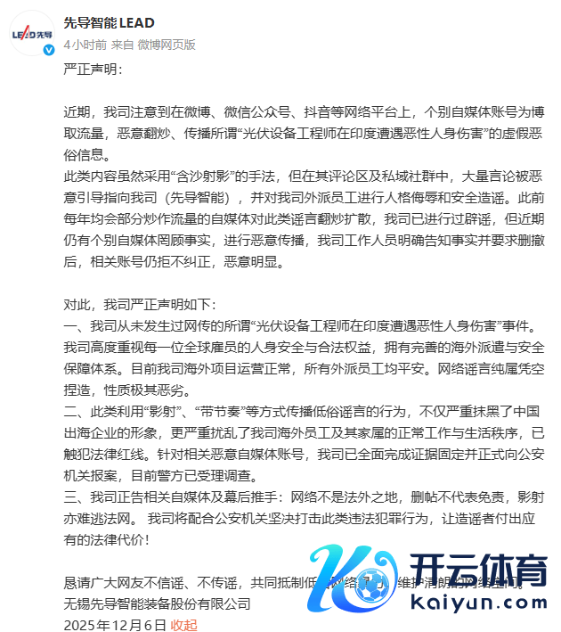 先导智能:公司从未发生过网传“光伏开发工程师在印度遭受恶性东说念主身伤害”事件先导智能:公司从未发生过网传“光伏开发工程师在印度遭受恶性东说念主身伤害”事件