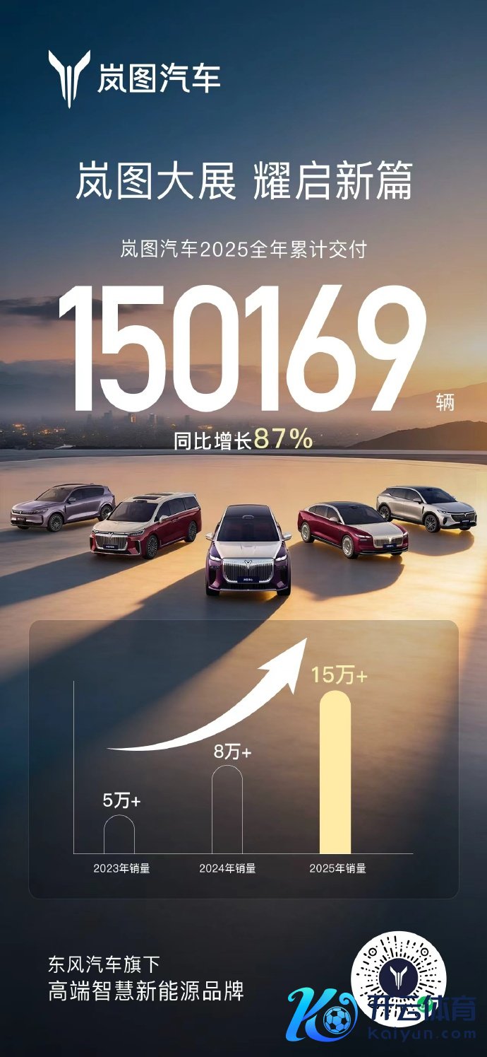 岚图汽车2025年累计寄托15万辆,同比增长87%岚图汽车2025年累计寄托15万辆,同比增长87%
