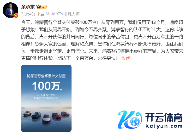 余承东:鸿蒙智行全系寄托阻滞100万台余承东:鸿蒙智行全系寄托阻滞100万台
