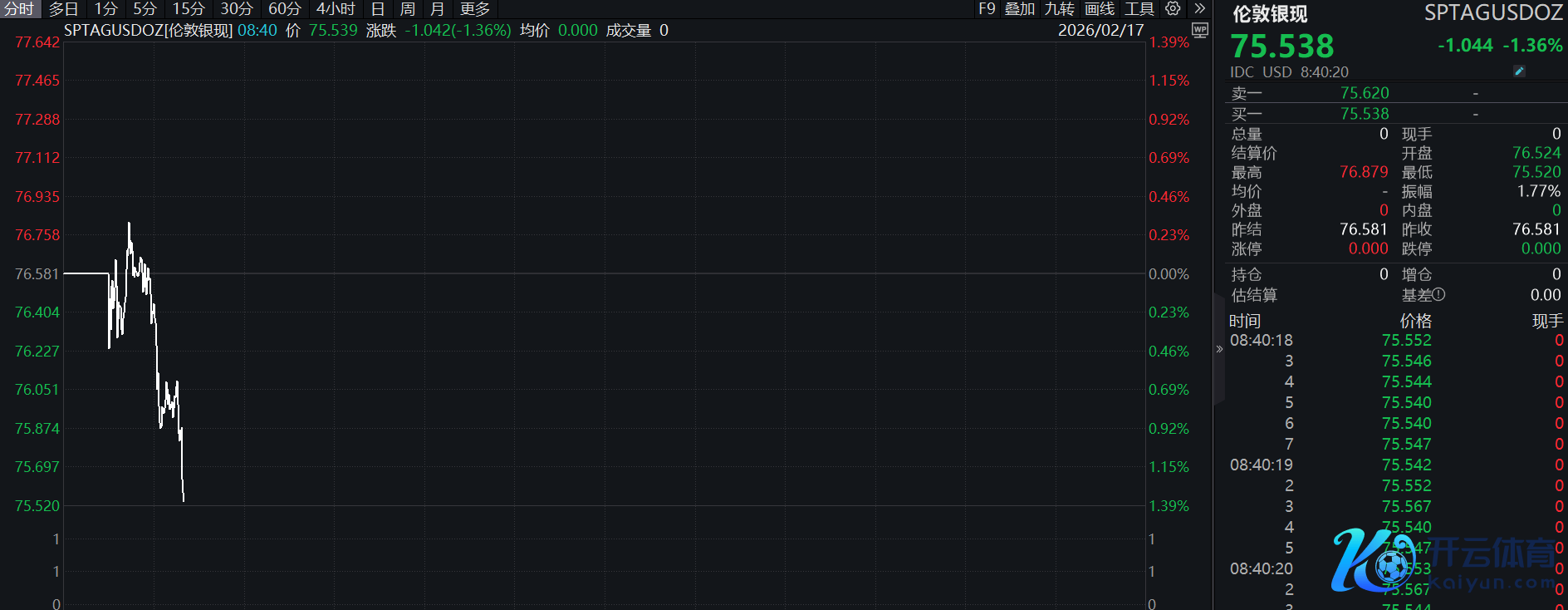 现货白银跌超1%现货白银跌超1%