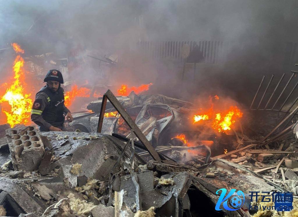 4月8日,拯救东说念主员在黎巴嫩齐门贝鲁特扑救以色列空袭激勉的失火(手机像片)。新华社发(比拉尔·贾维希摄)