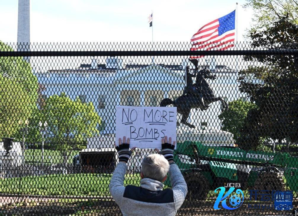 4月7日,又名请愿者在好意思国齐门华盛顿的白宫前手举口号。新华社记者 李睿 摄