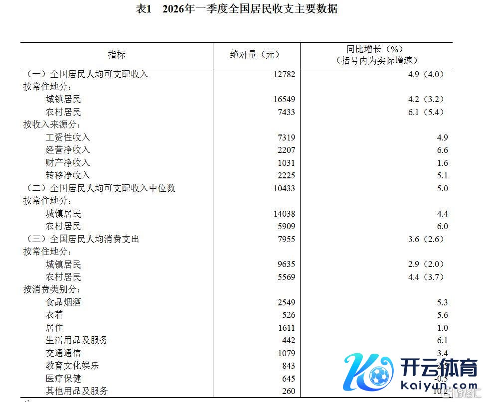 一季度,寰宇住户东谈主均可驾驭收入12782元,比上年同时款式增长4.9%,扣除价钱身分,施行增长4.0%。分城乡看,城镇住户东谈主均可驾驭收入16549元,增长(以下如无相配评释,均为同比款式增长)4.2%,扣除价钱身分,施行增长3.2%;农村住户东谈主均可驾驭收入7433元,增长6.1%,扣除价钱身分,施行增长5.4%。