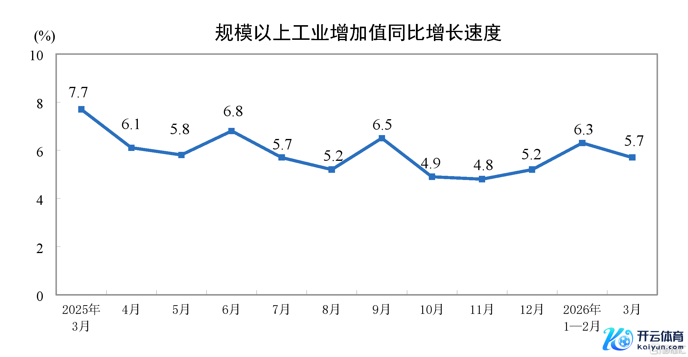 3月份边界以上工业加多值增长5.7%