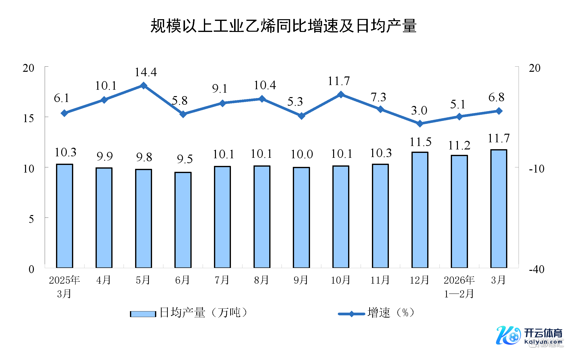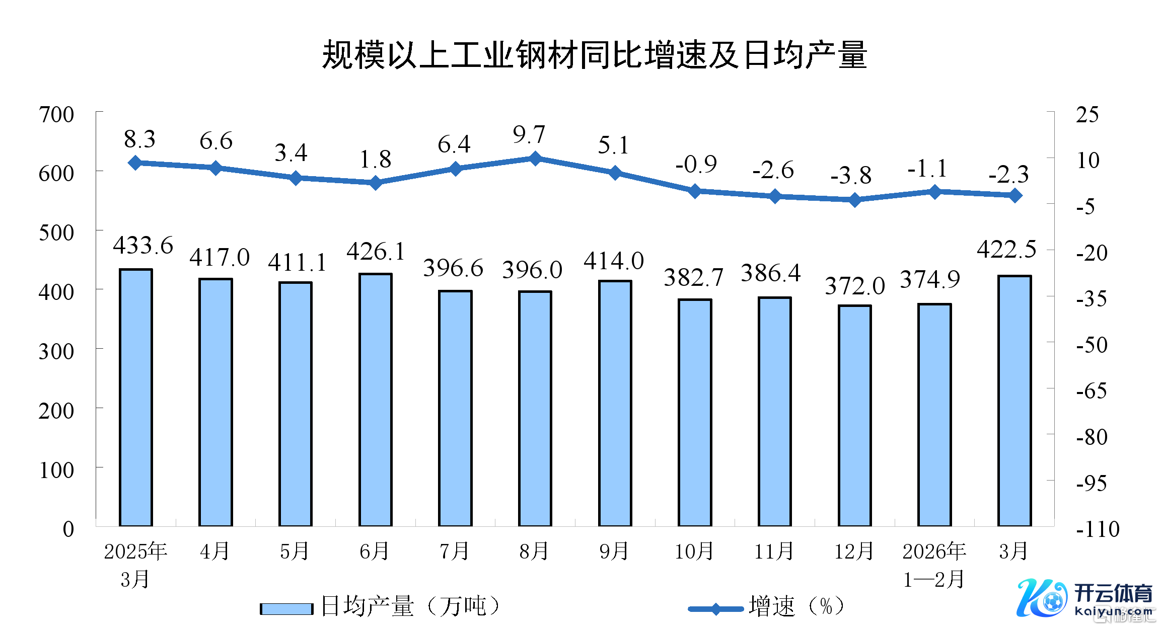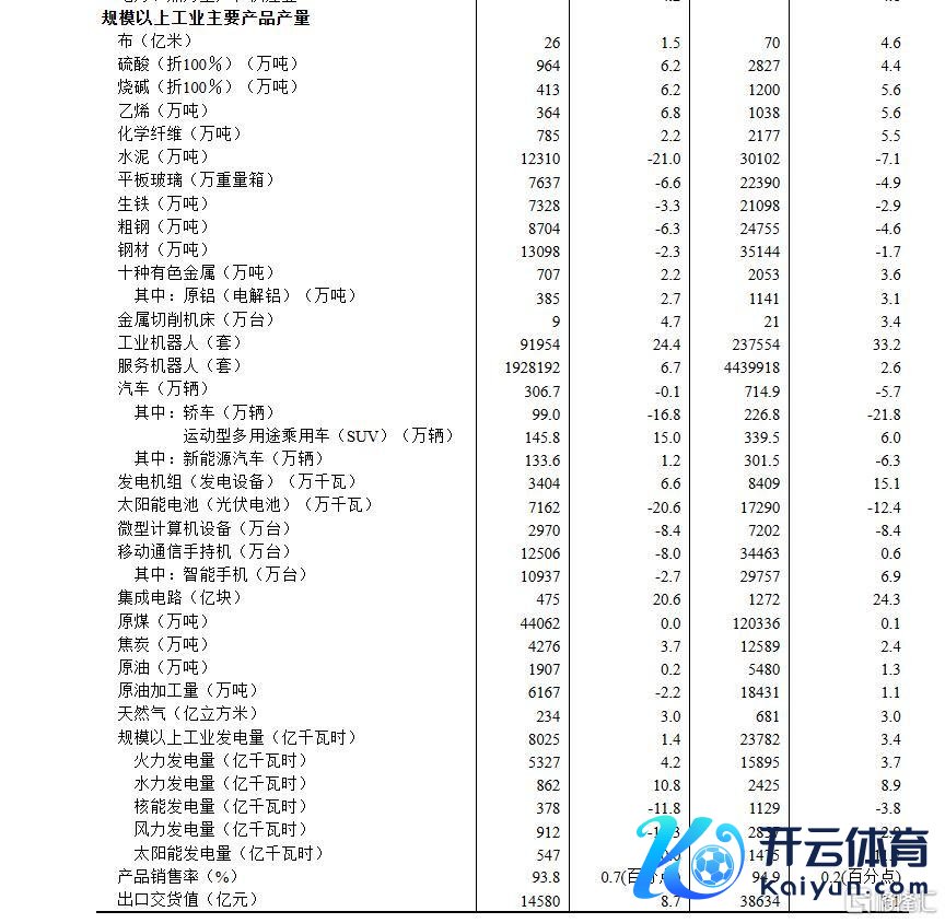 分产物看,3月份,边界以上工业626种产物中有329种产物产量同比增长。其中,钢材13098万吨,同比下落2.3%;水泥12310万吨,下落21.0%;十种有色金属707万吨,增长2.2%;乙烯364万吨,增长6.8%;汽车306.7万辆,下落0.1%,其中新动力汽车133.6万辆,增长1.2%;发电量8025亿千瓦时,增长1.4%;原油加工量6167万吨,下落2.2%。