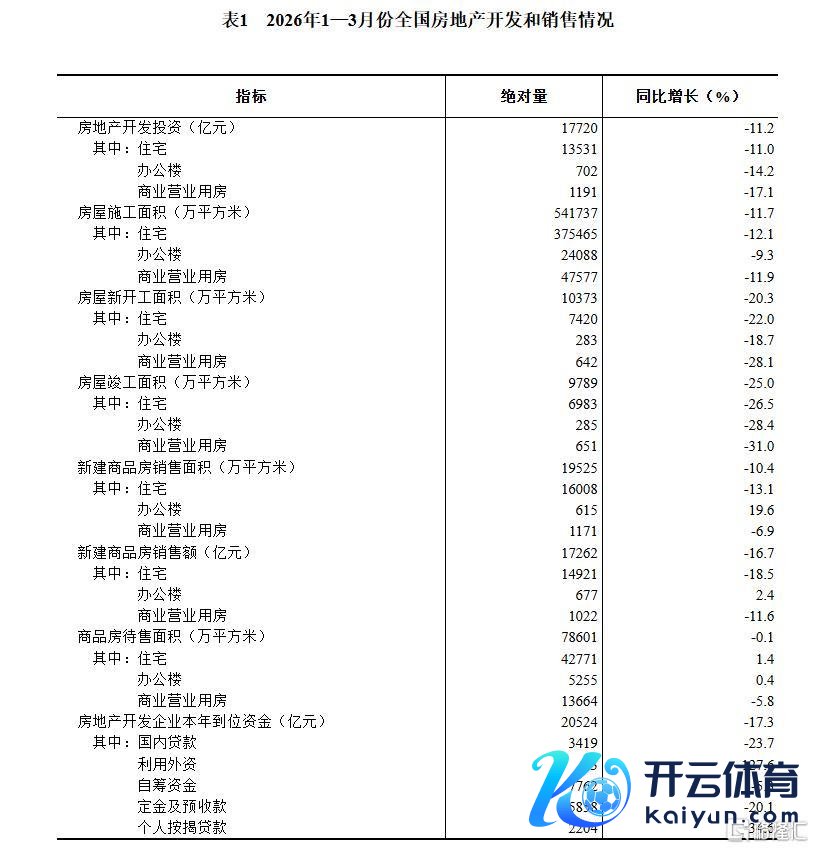 1—3月份,房地产斥地企业房屋施工面积541737万平淡米,同比下落11.7%。其中,住宅施工面积375465万平淡米,下落12.1%。房屋新开工面积10373万平淡米,下落20.3%。其中,住宅新开工面积7420万平淡米,下落22.0%。房屋完满面积9789万平淡米,下落25.0%。其中,住宅完满面积6983万平淡米,下落26.5%。