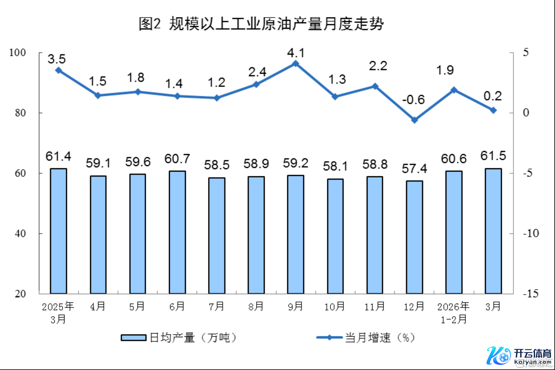 原油分娩保合手增长。3月份,规上工业原油产量1907万吨,同比增长0.2%;日均产量61.5万吨。