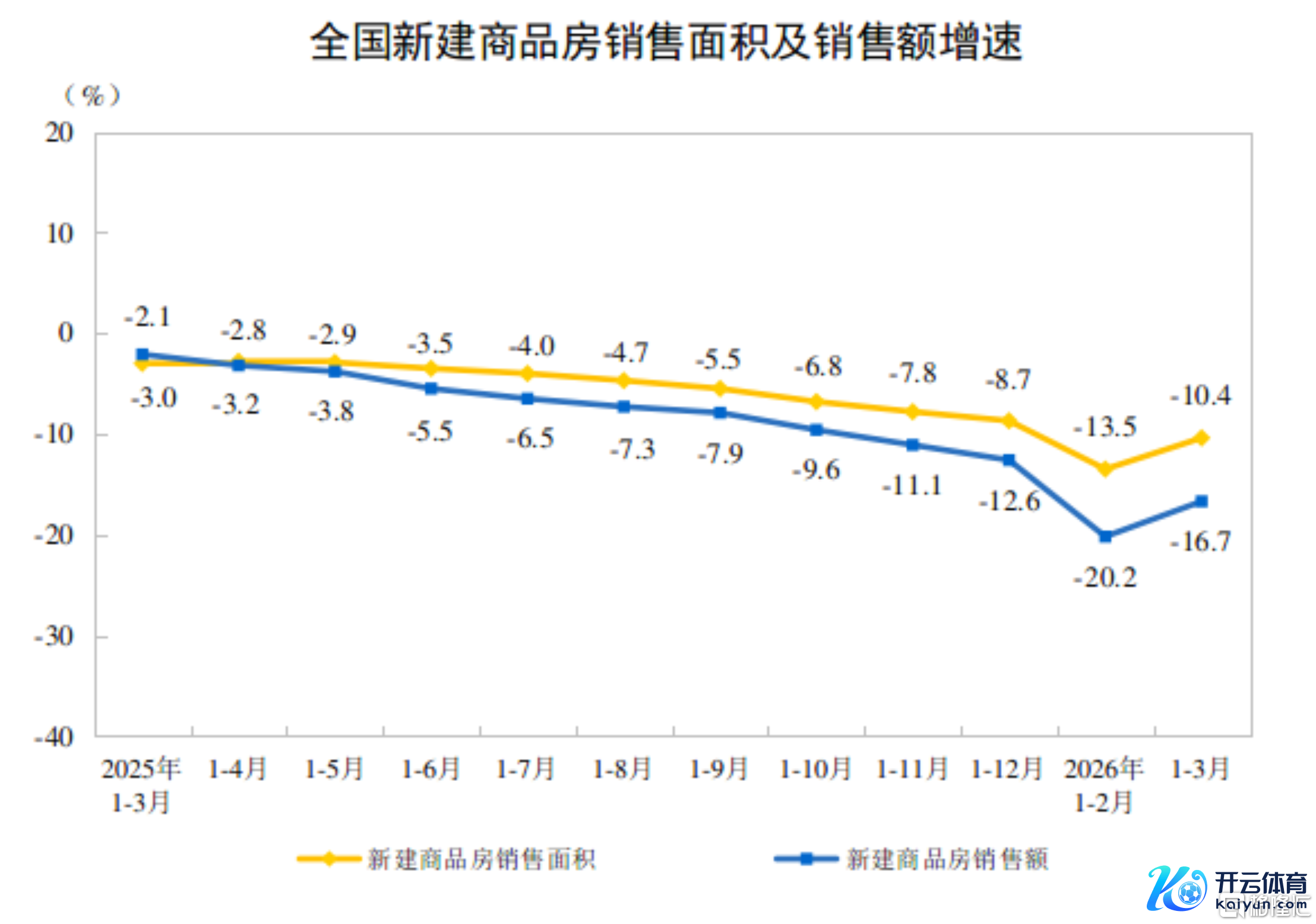 1—3月份,新建商品房销售面积19525万平淡米,同比下落10.4%,降幅比1—2月份收窄3.1个百分点;其中住宅销售面积下落13.1%。新建商品房销售额17262亿元,下落16.7%,降幅收窄3.5个百分点;其中住宅销售额下落18.5%。
